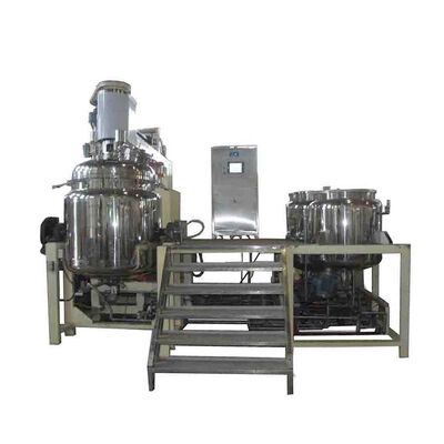 دستگاه دارای مخلوط کن سه گانه، پوشش بالابر هیدرولیک، مخلوط کن همگن با سرعت بالا (سرعت 0-3500r/min، تنظیم سرعت فرکانس است) و مخلوط کن اسکراپر با سرعت پایین (سرعت 0-40r/min، تنظیم سرعت فرکانس است).در قسمت هموژنایزر از مخلوط کن امولسیون کننده گردابی استفاده شده است که می تواند با سرعت کم خراشیده شود و به طور خودکار به ته و دیواره دیگ بچسبد.این دستگاه مواد پودری را از طریق خلاء می کشد تا از پرواز پودر جلوگیری کند.کل روش کار در شرایط خلاء عمل می کند تا از حباب شدن مواد پس از اختلاط با سرعت بالا جلوگیری شود و به درخواست بهداشت و آسپسیس برسد.سیستم تمیز کننده CIP در این سیستم مجهز شده است.