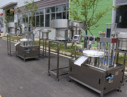 نازل های پرکننده برای پر شدن در ظرف فرو می روند و برای جلوگیری از حباب زدن به آرامی به سمت بالا حرکت می کنند.